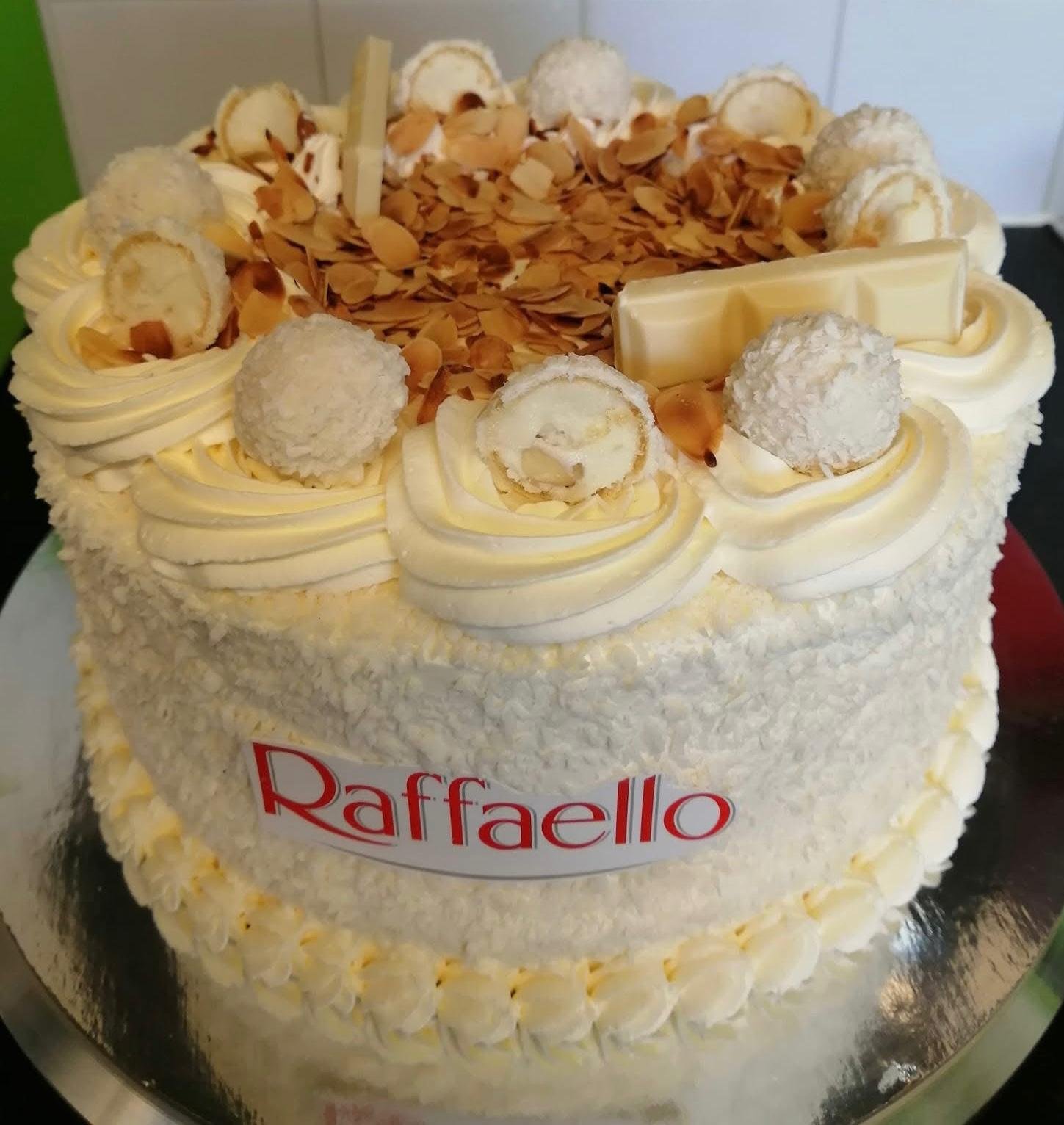Um sofisticado bolo Raffaello, inspirado no famoso doce, com camadas macias e húmidas de coco e amêndoa, envolvidas por um creme suave de chocolate branco. O sabor é delicado, levemente doce e intensamente aromático, com um toque tropical irresistível.